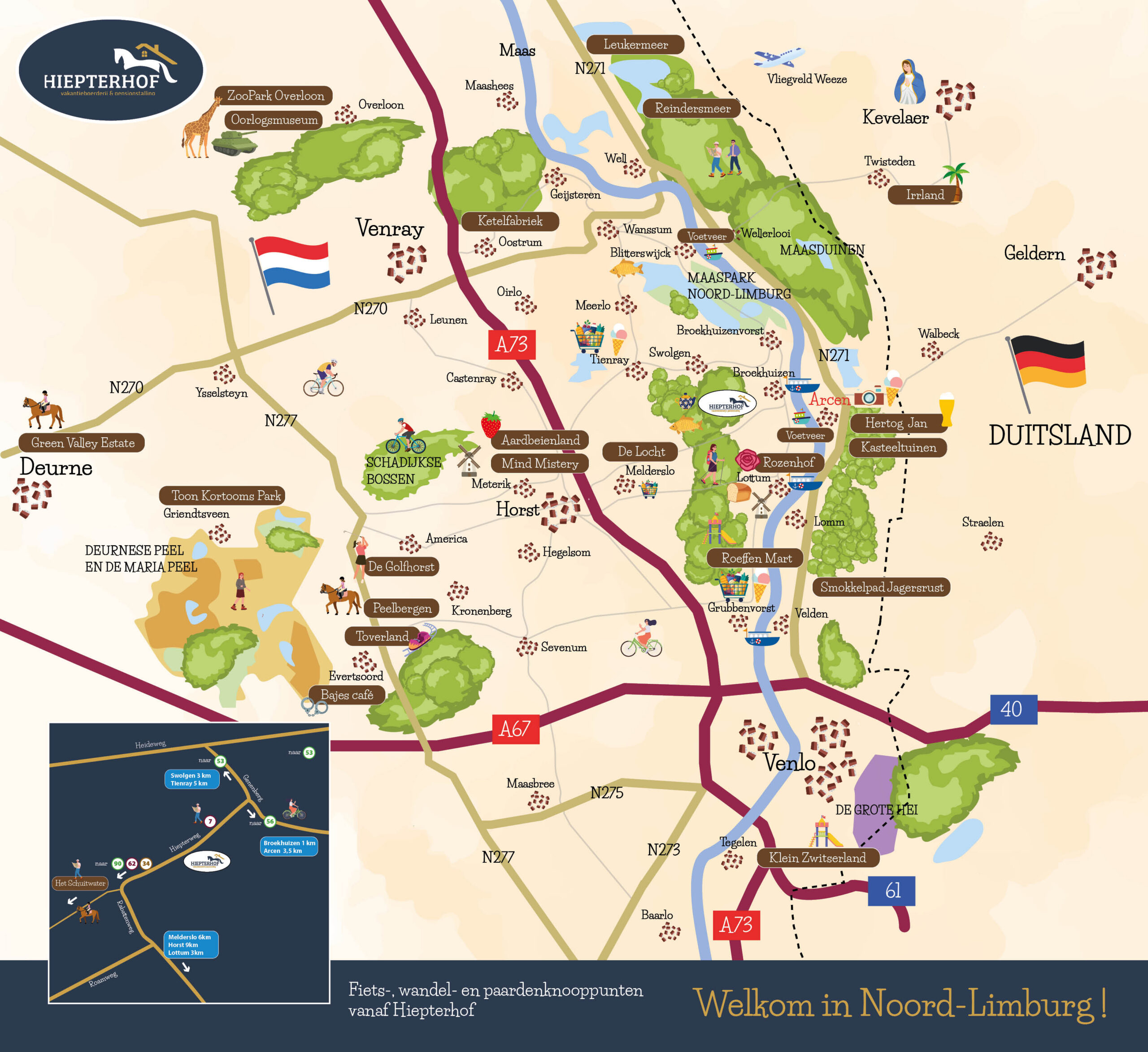 Voor vakantieboerderij Hiepterhof ontwierp ik de complete visuele uitstraling. Ik maakte de huisstijl, de signing op het terrein, infoborden en de website. Alles vormt één geheel en helpt gasten makkelijk hun weg te vinden. De uitstraling past bij de rust en het karakter van deze mooie plek.